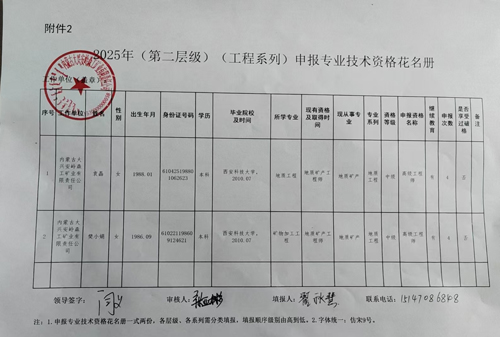 根據森工集團“內森工職改辦字〔2025〕74號”文件要求,經本人提出申請,公司考核,擬推薦職工樊小娟、袁晶參加2025年森工集團組織的副高級職稱評審,翟秋慧參加中級職稱評審。現將參加職稱評審職工進行公示,公示期為5天,自2025年6月16日至2025年6月20日止。